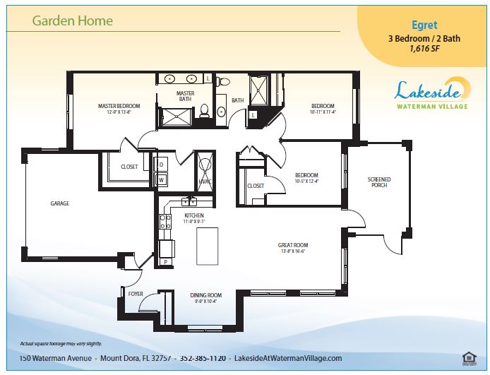 Below you’ll find the various floor plans at our new Lakeside Retirement Community at Waterman Village.  Located in Mount Dora, Florida (Central Florida), just northwest of Orlando and East of Leesburg, Florida. Florida’s TOTAL retirement living campus with on-site health facilities and services.  Beautiful/large screened in lanais, extra storage, covered parking, etc. Just click on any image to enlarge it.