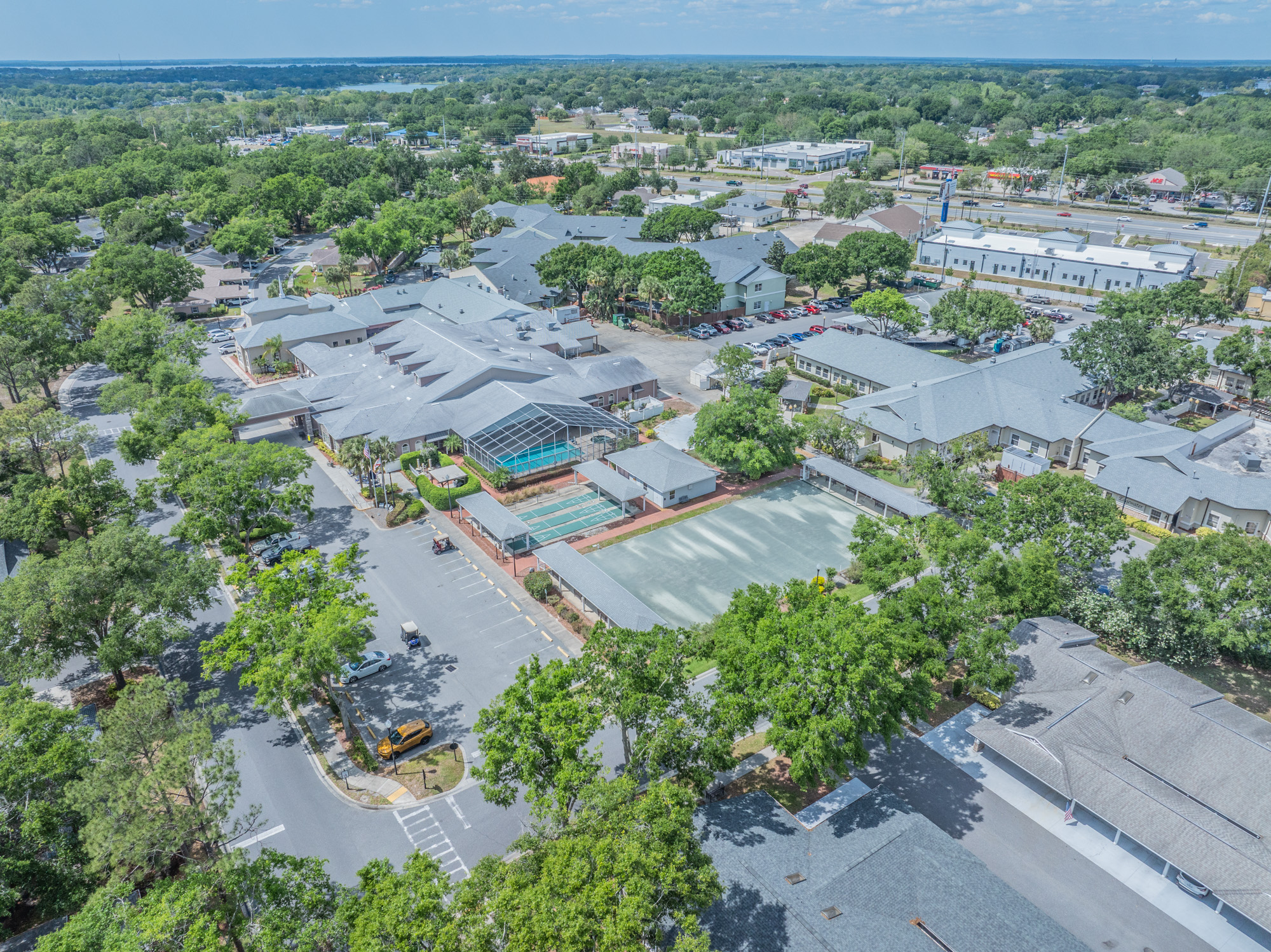 The Oaks offers three dining venues, a staffed gatehouse 24/7, and priority access to all the amenity, living and service areas Waterman Village has to offer. Residents can walk or golf cart to dental and doctor offices, as well as a physical therapy clinic. You can now take your golf cart to downtown Mount Dora. Adjacent to Waterman Village is a hardware store, a grocery store and a Walgreens.