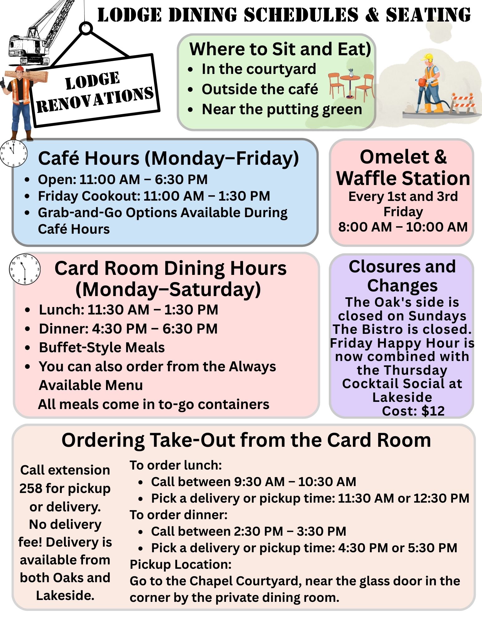 Skilled labor (electrical, carpentry, etc.) is billed based on scope and scheduled with at least 2 weeks’ notice at ext. 251.