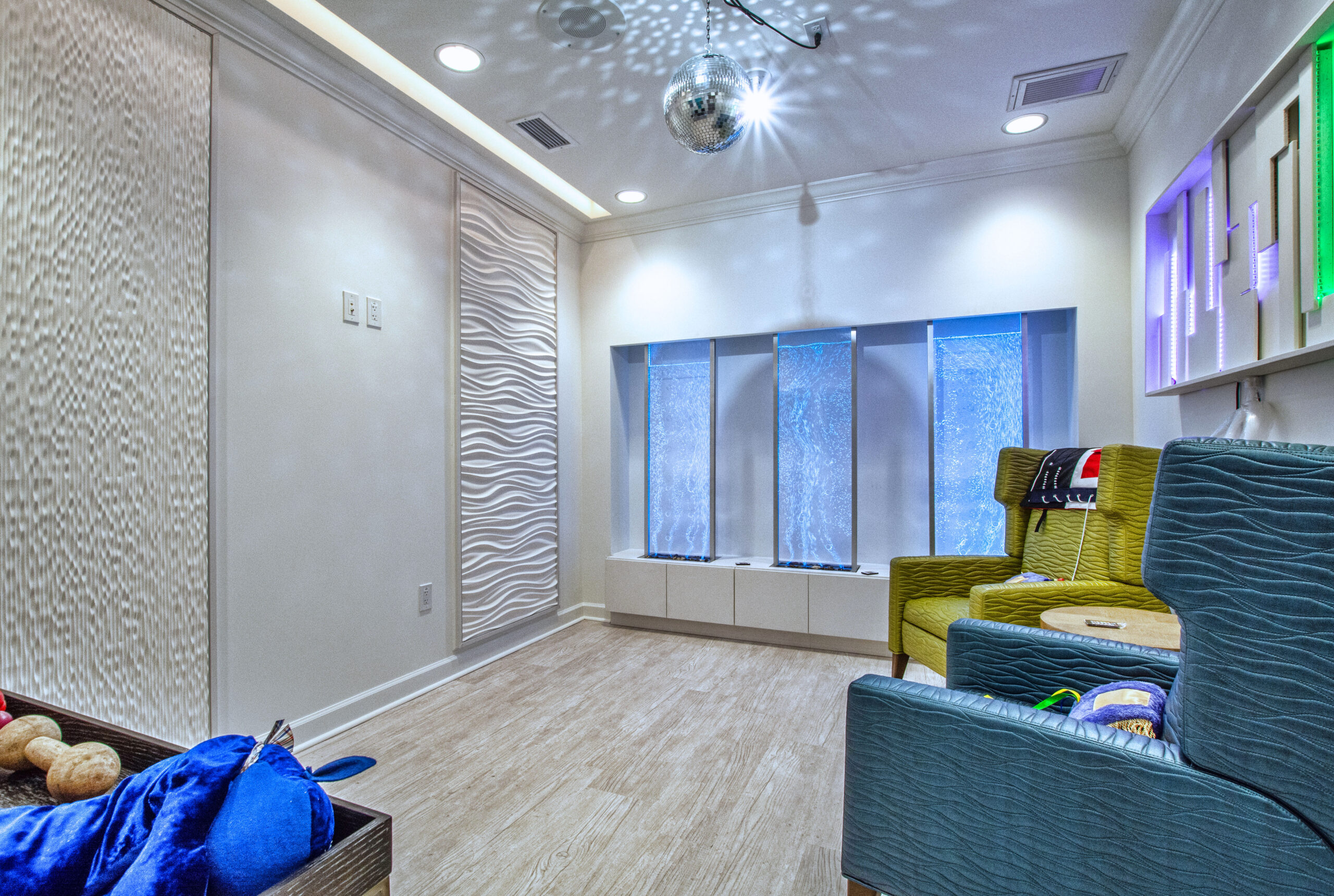 - A state-of-the-art sensory room with various types of lighting for sensory stimulation.