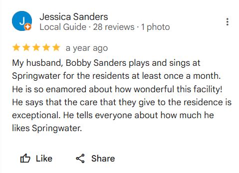 “Should a Springwater resident require short or long-term nursing home care in the future, those services are available right on site, making it much easier for family members” *