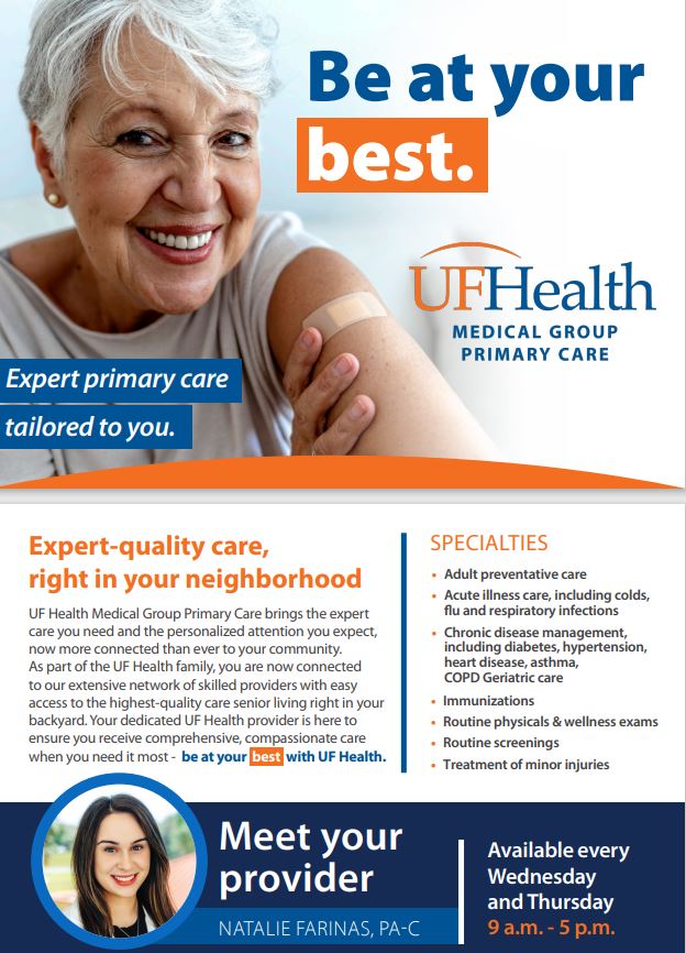 Waterman Village has partnered with University of Florida Health, to operate a full-service primary care medical clinic right on the Waterman Village campus!